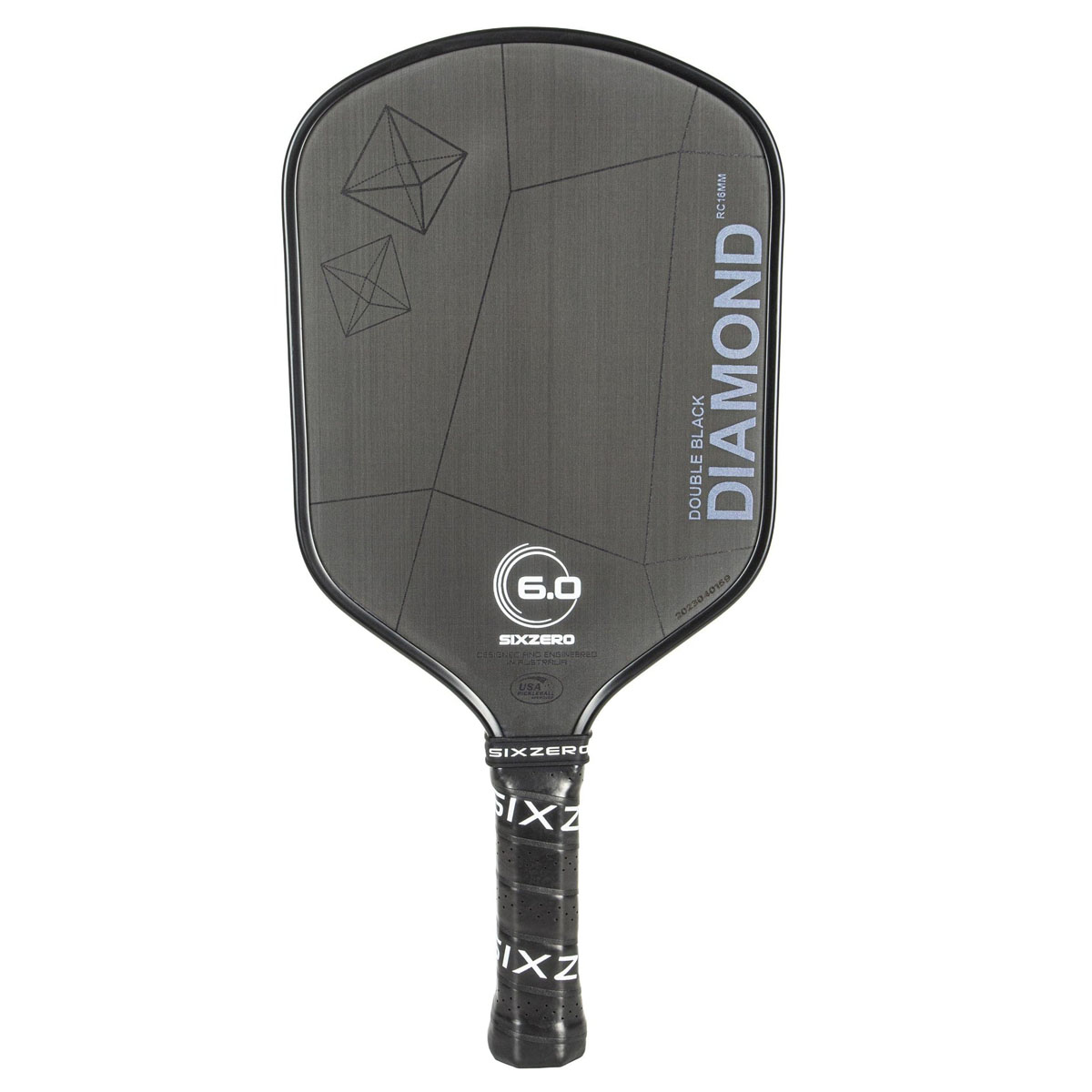 nTo maximize strength and performance Six Zero engineers have designed a 3D carbon forged handle. The carbon face and fusion edge technology extends down the full length of the handle and is forged together under heat and pressure – 3D carbon. The construction is designed to reduce vibration, ensuring comfortable play and a responsive feel. The design allows for optimal flex, improving the paddle neck sweet spot. A tapered neck and a 5.5” elongated handle accommodates for double backhand players. The handle is finished with a premium custom Six Zero perforated leather grip with a 4.25” circumference – suited to all sized hands.