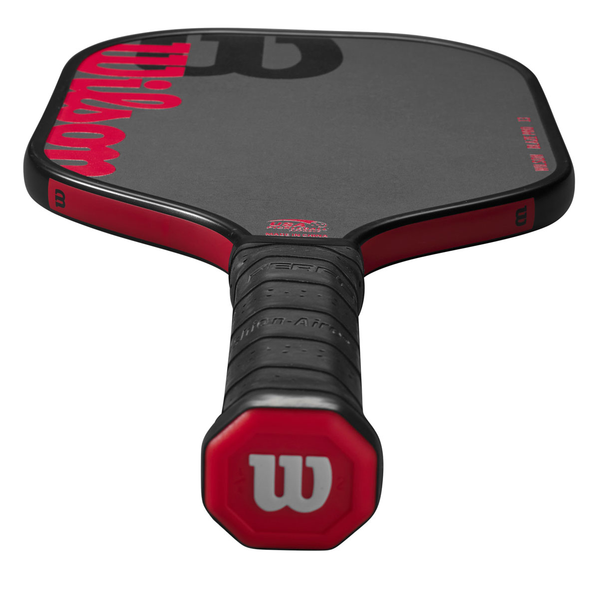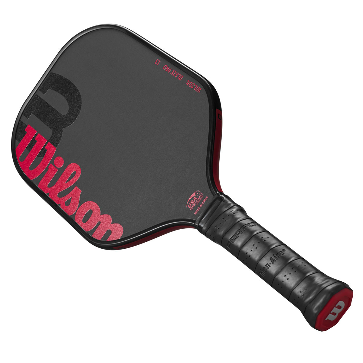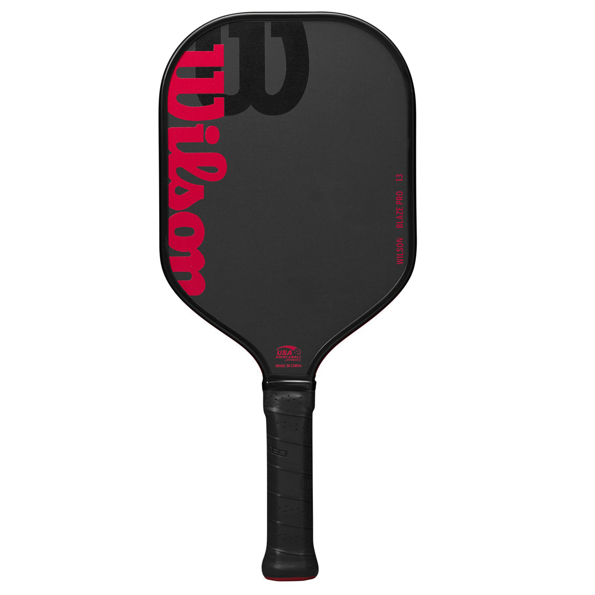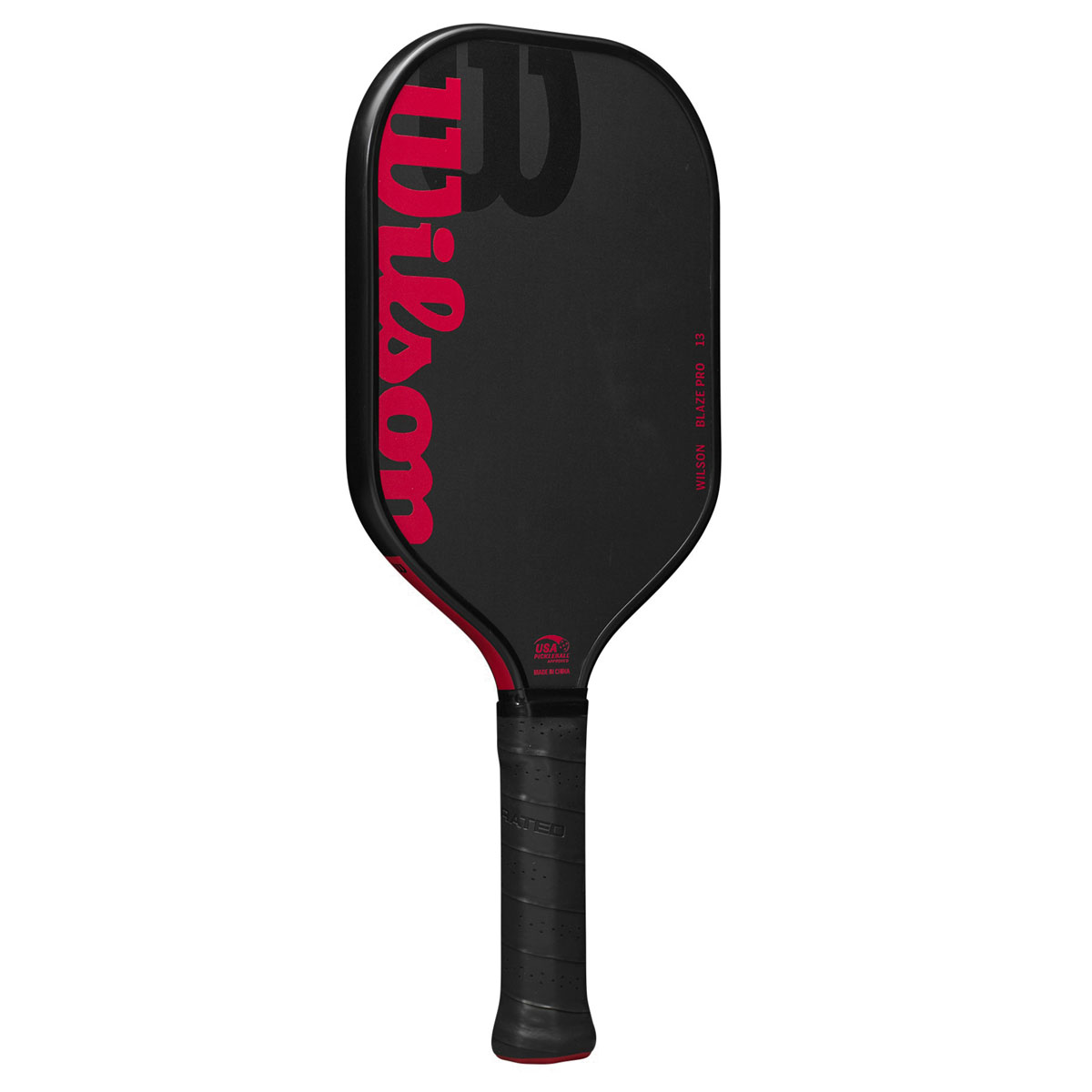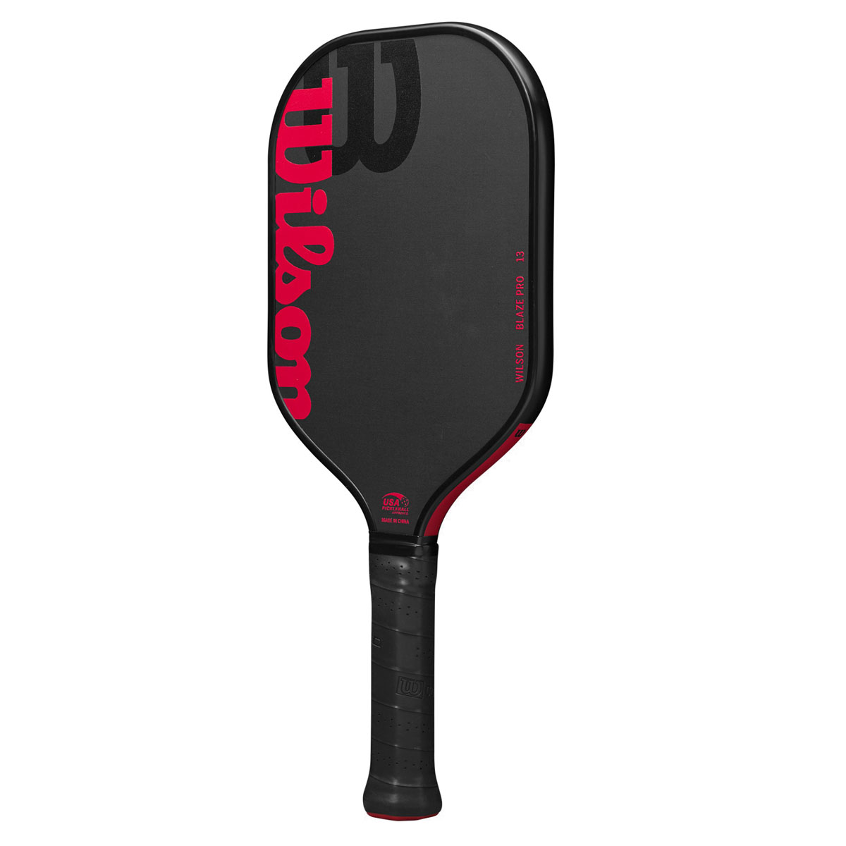 High-performance paddle with a raw hybrid surface that is best for players looking to maximize power and spin on each shot. Once you’ve mastered control and can put the ball anywhere on the court with precision, maximize your power with Wilson’s Blaze Pro 13 Pickleball Paddle. Designed for competitive players who can hit the ball deep into the court or drop it just over the net, the elongated paddle features a hybrid face of raw carbon fiber with a fiberglass base to help you maximize power and generate spin. Its Thermoformed Edge wraps carbon fiber around the perimeter of the frame, which increases its stability, expands the sweet spot and reduces vibrations.